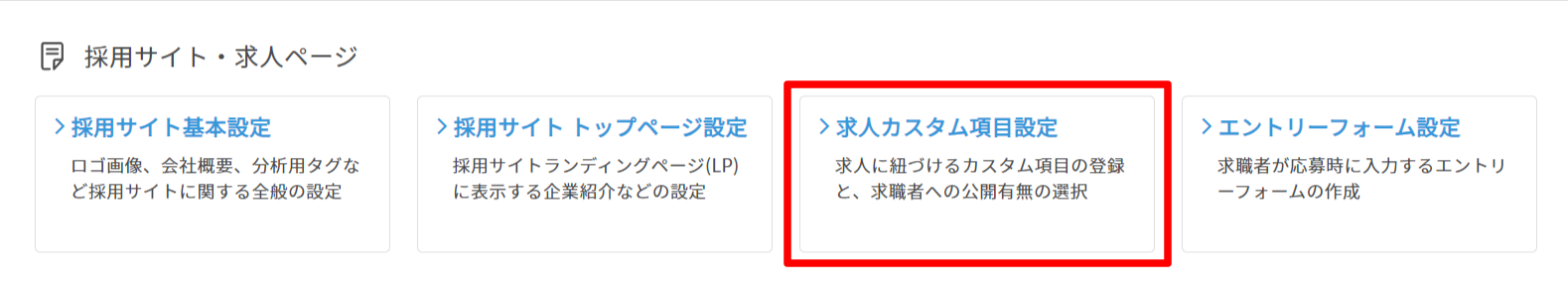 2. 「求人管理」内の「求人カスタム項目設定」をクリックします。