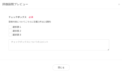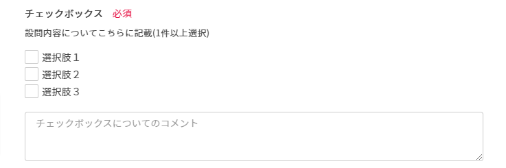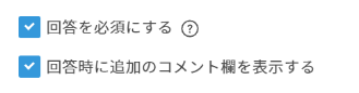 各設問設定にて「回答を必須にする」「回答時に追加のコメント欄を表示する」にチェックをつけた設定の画像となります。