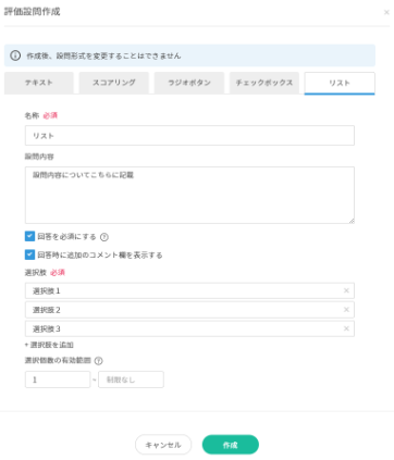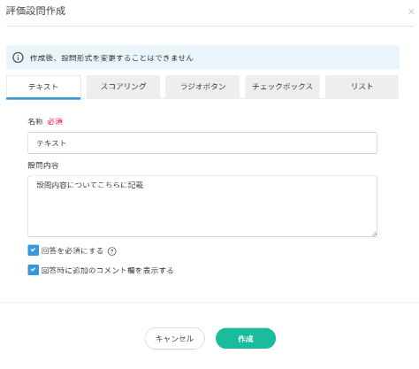 また、評価についてのコメントを設定したい場合は、「回答時に追加のコメント欄を表示する」にチェックしてください。