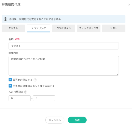 ここでは、評価項目の登録・編集・削除を行うことができます。