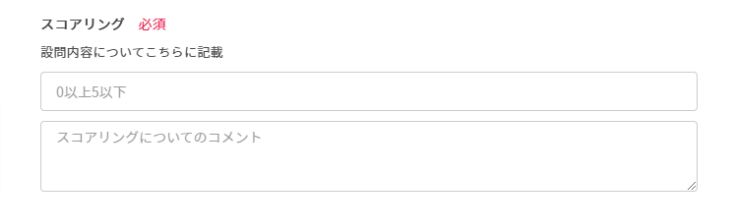 登録した評価項目は「求人」ごとに設定することができ、候補者の選考結果を入力する際に項目ごとに数値やコメントを入力することができます。