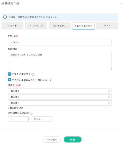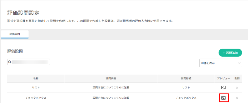 プレビューをクリックすることで、作成した設問の内容を確認していただくことが可能です。