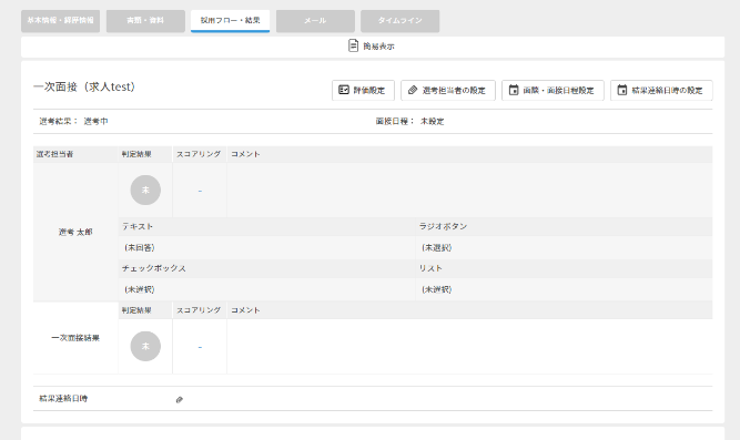求人に設定することで、選考担当者が選考結果を入力する際に評価の項目が表示されます。