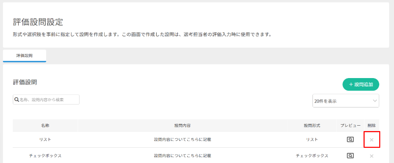 (求人に設定されている項目、既に候補者の選考結果で使用している項目は削除ができません。)