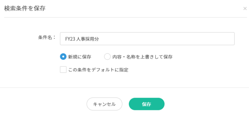「この条件をデフォルトに指定」にチェックを入れていただくと、この条件がデフォルトで表示されます。