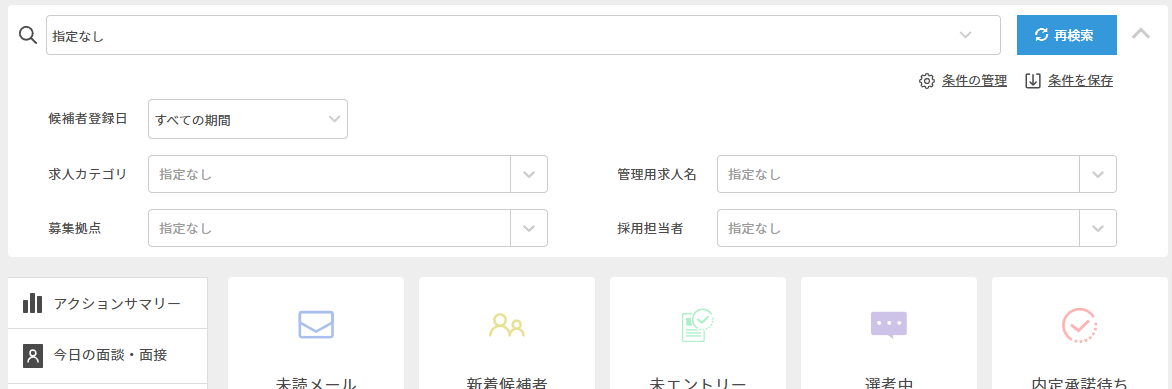 | 未エントリー | 求人未設定・エントリー確定前の候補者数を表示します。 |