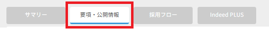 1. 左側メニュー「求人管理」より選択した求人の詳細画面より、「要項・公開情報」タブをクリックします。
