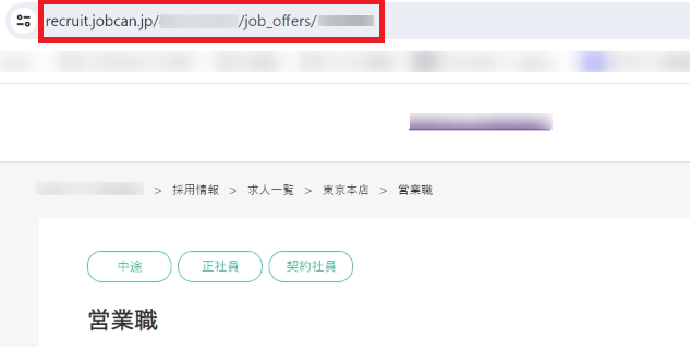 上記操作にて「求人ページ」のURLを取得することができます。