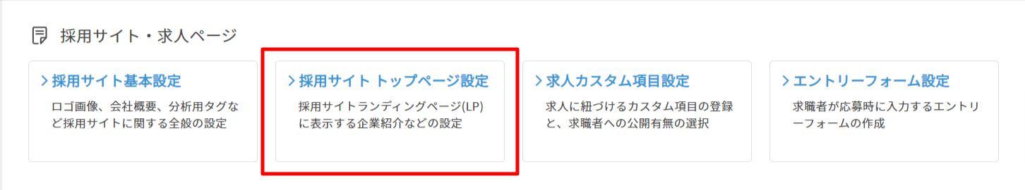2.「求人管理」内、「採用サイトトップページ設定」をクリックします。