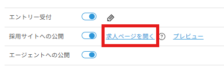 3.求人詳細画面「採用サイトへの公開」横の「求人ページを開く」をクリックします。