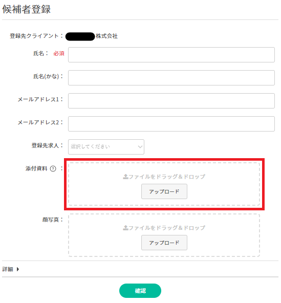 「詳細▶」をクリックして、より詳細な候補者の情報を登録することが可能です。