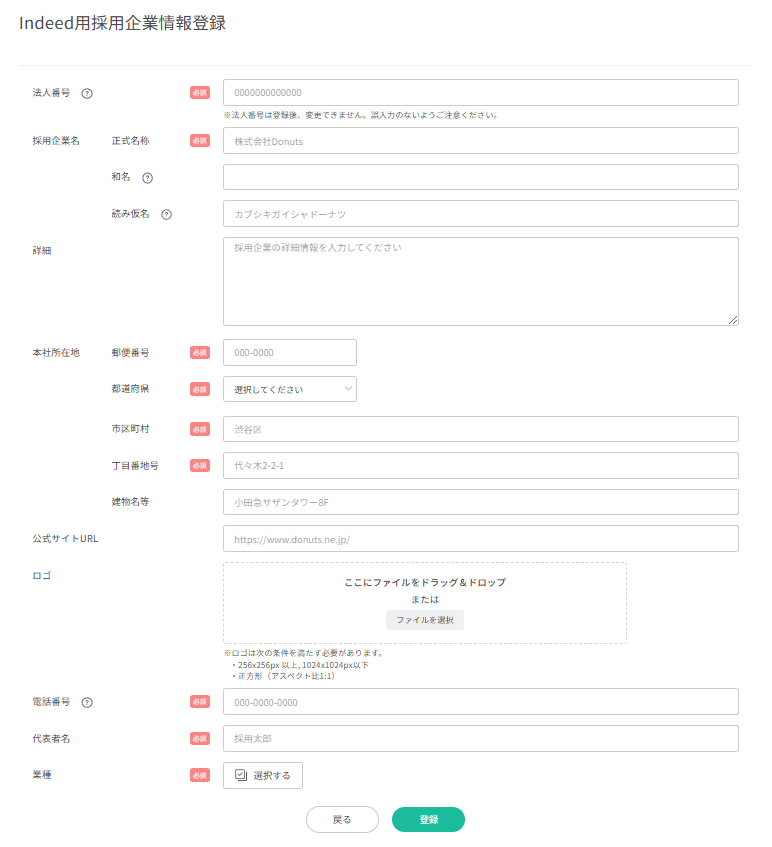 Indeed PLUS 採用企業情報を登録する
