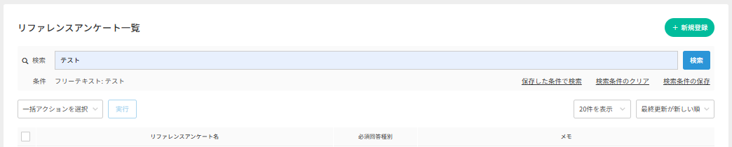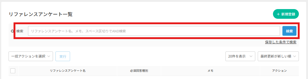 | リファレンスアンケート名 | 登録されたアンケート名で検索が可能です |