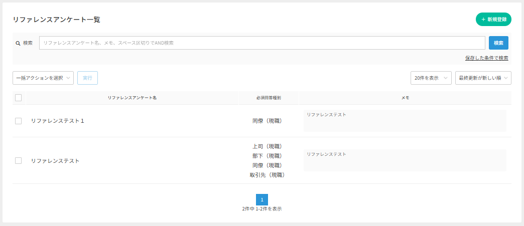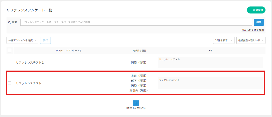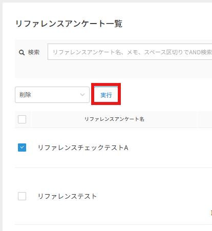 リファレンスチェックのアンケート一覧について