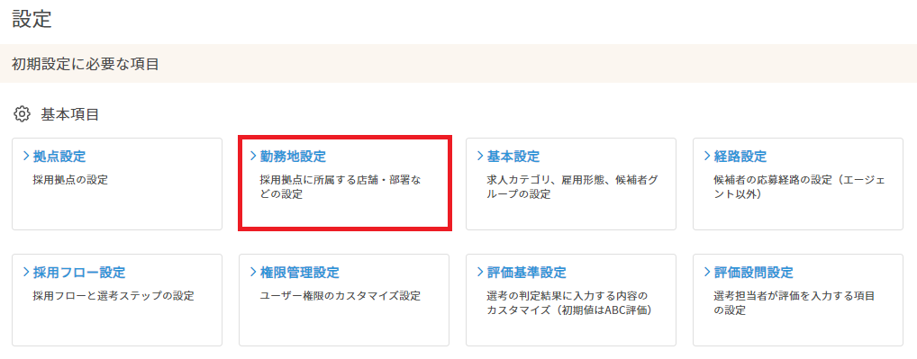 2. 「基本項目」内、「勤務地設定」をクリックします。
